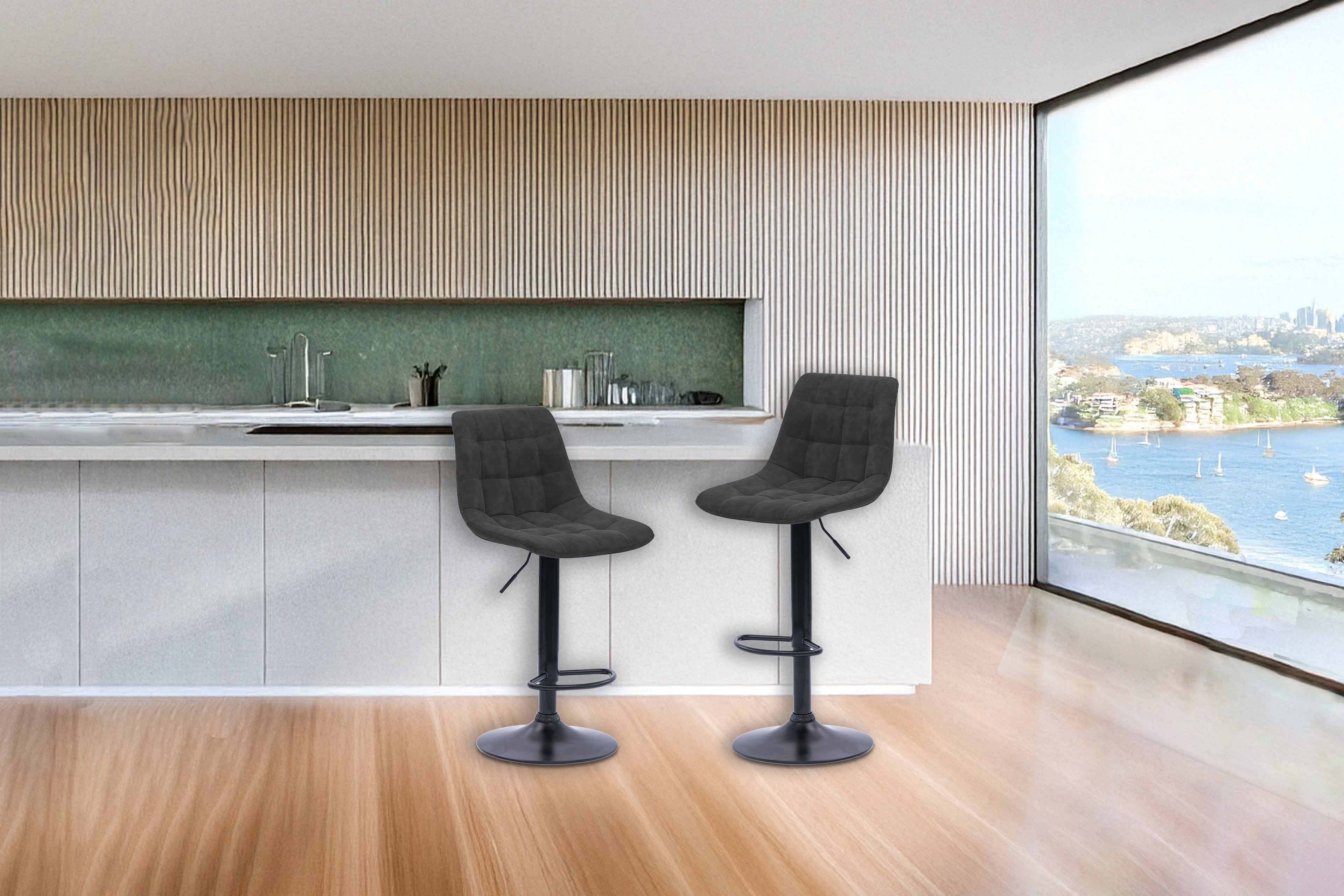 Urban Style Harry Bar Stools Gas Lift Black Metal Grey PU Pair