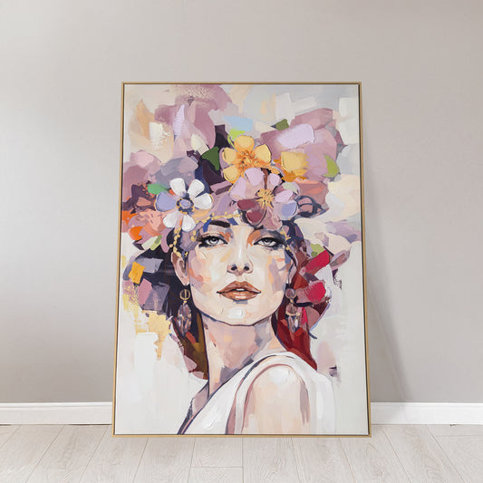 • Urban Style Brushmarks Embellished Canvas Flower Woman