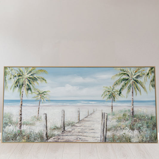 • Urban Style Brushmarks Oil Painting Textured Palmtree Boardwalk