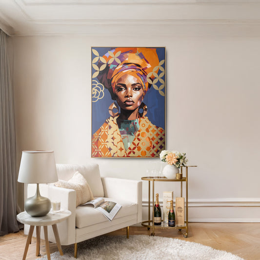 Urban Style Brushmarks Foiled Canvas African Woman Blue