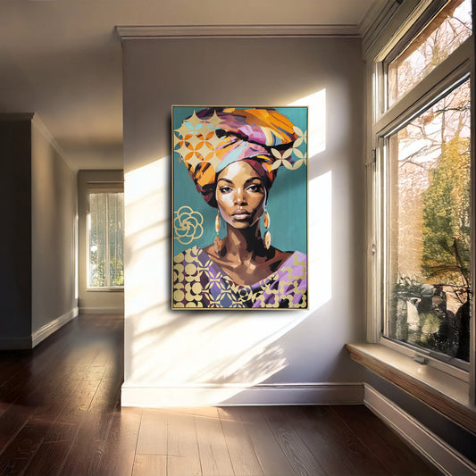 Urban Style Brushmarks Foiled Canvas African Woman Teal