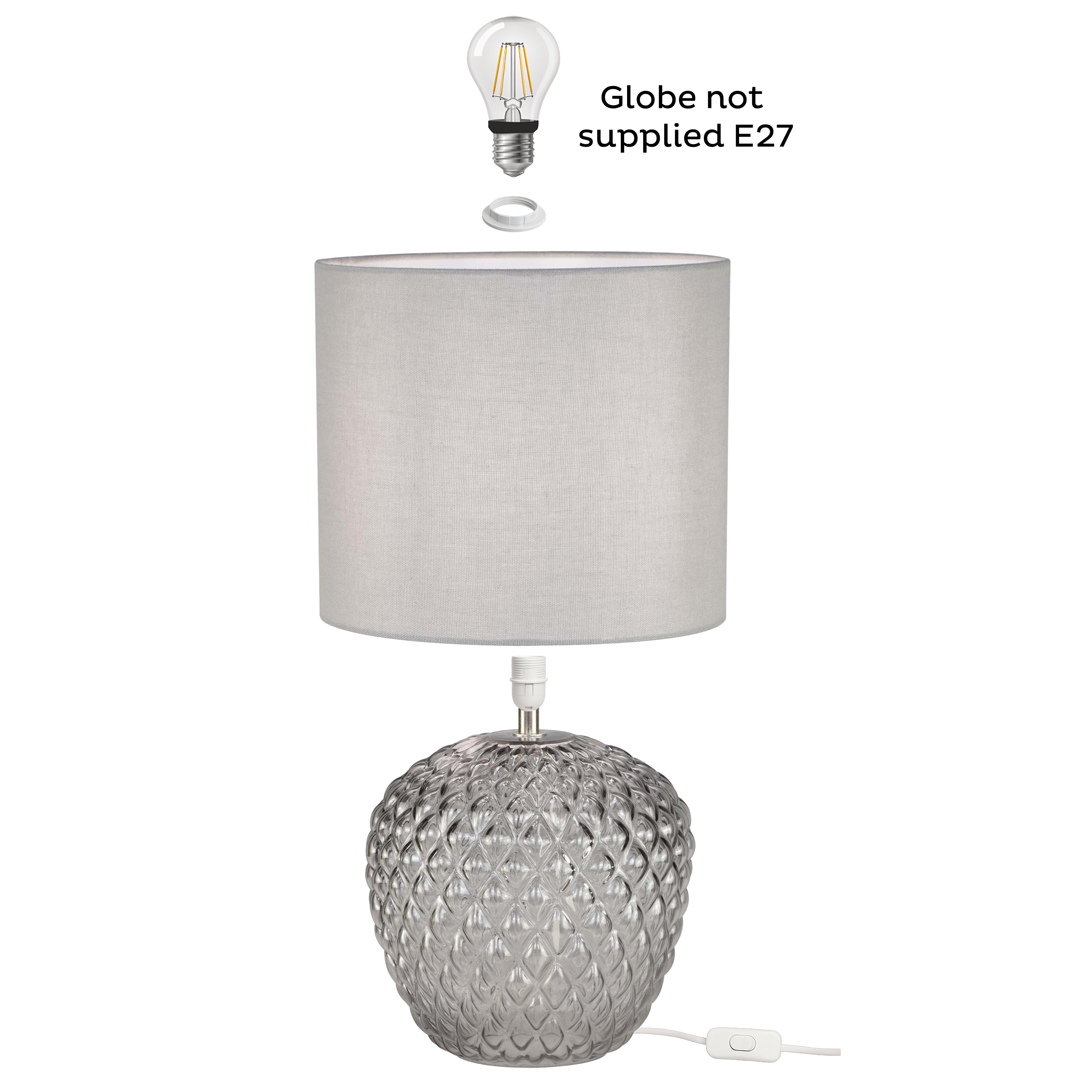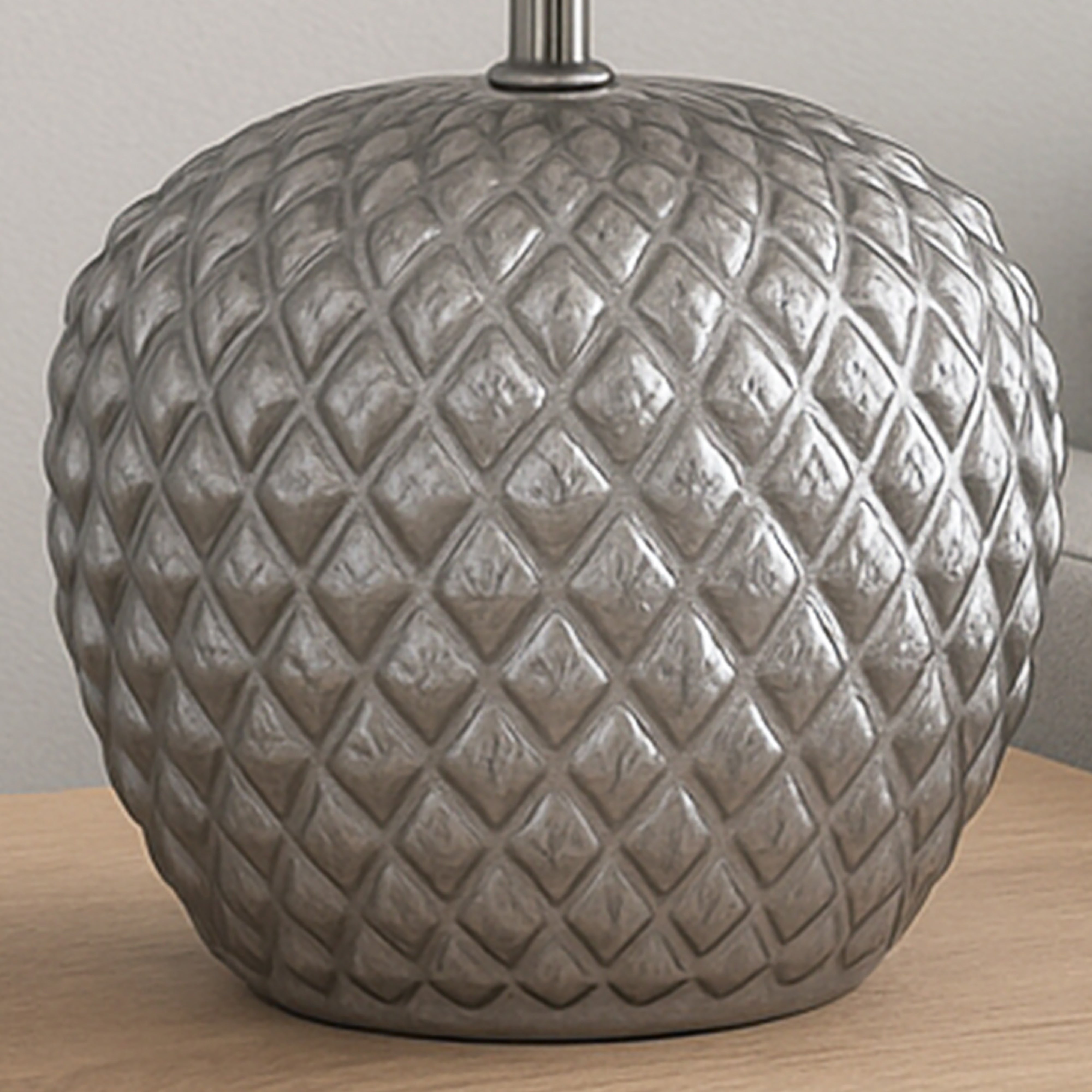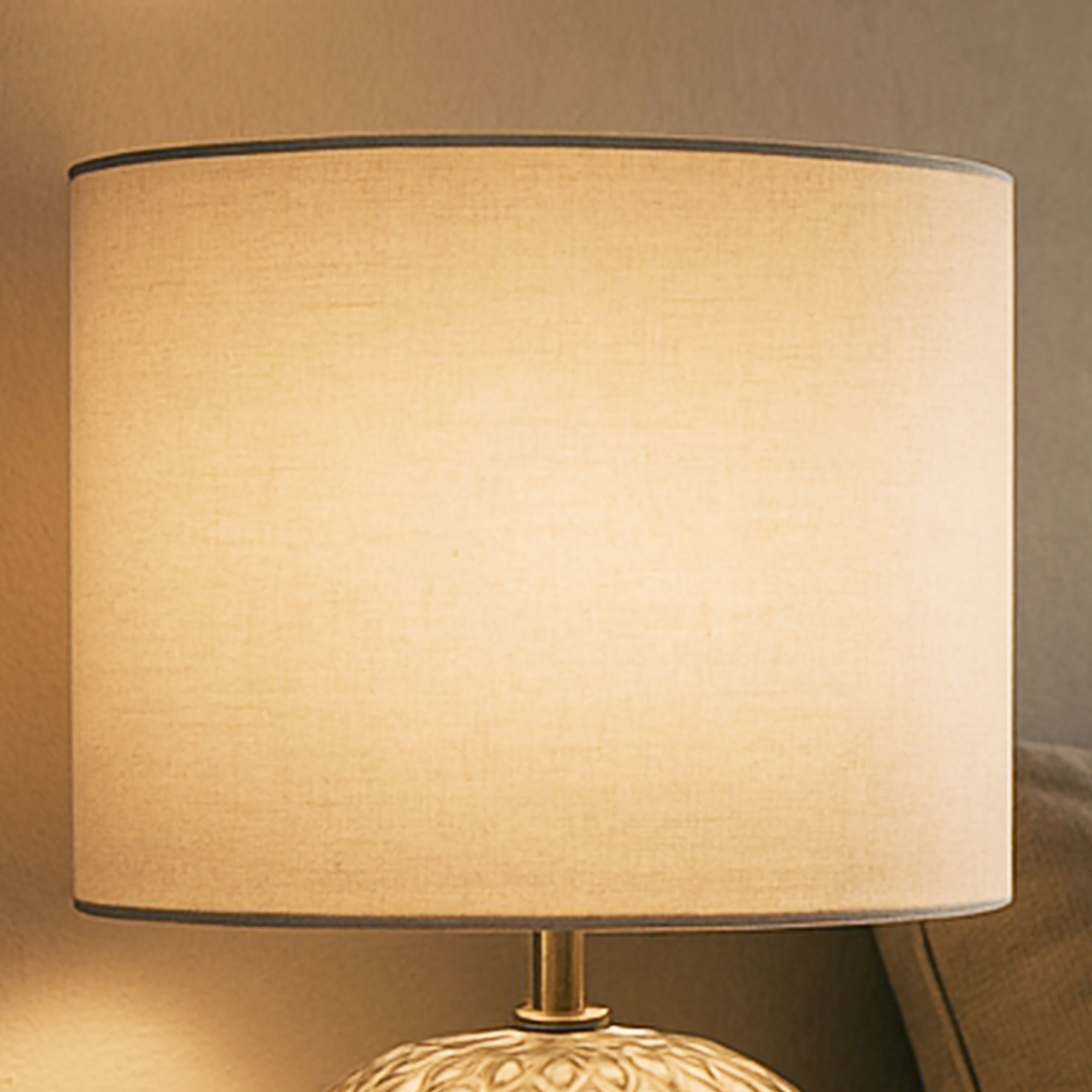 The Annie desktop lamp by Urban Style brings together graceful form and timeless texture. Its softly rounded glass base, styled in a raised diamond pattern, evokes hand-crafted artistry, while the neutral grey palette and fabric shade offer a calming and elegant light.