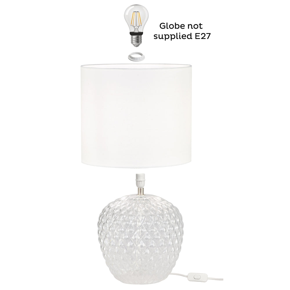 The Annie desktop lamp by Urban Style brings together graceful form and timeless texture. Its softly rounded glass base, styled in a raised diamond pattern, evokes hand-crafted artistry, while the neutral grey palette and fabric shade offer a calming and elegant light.