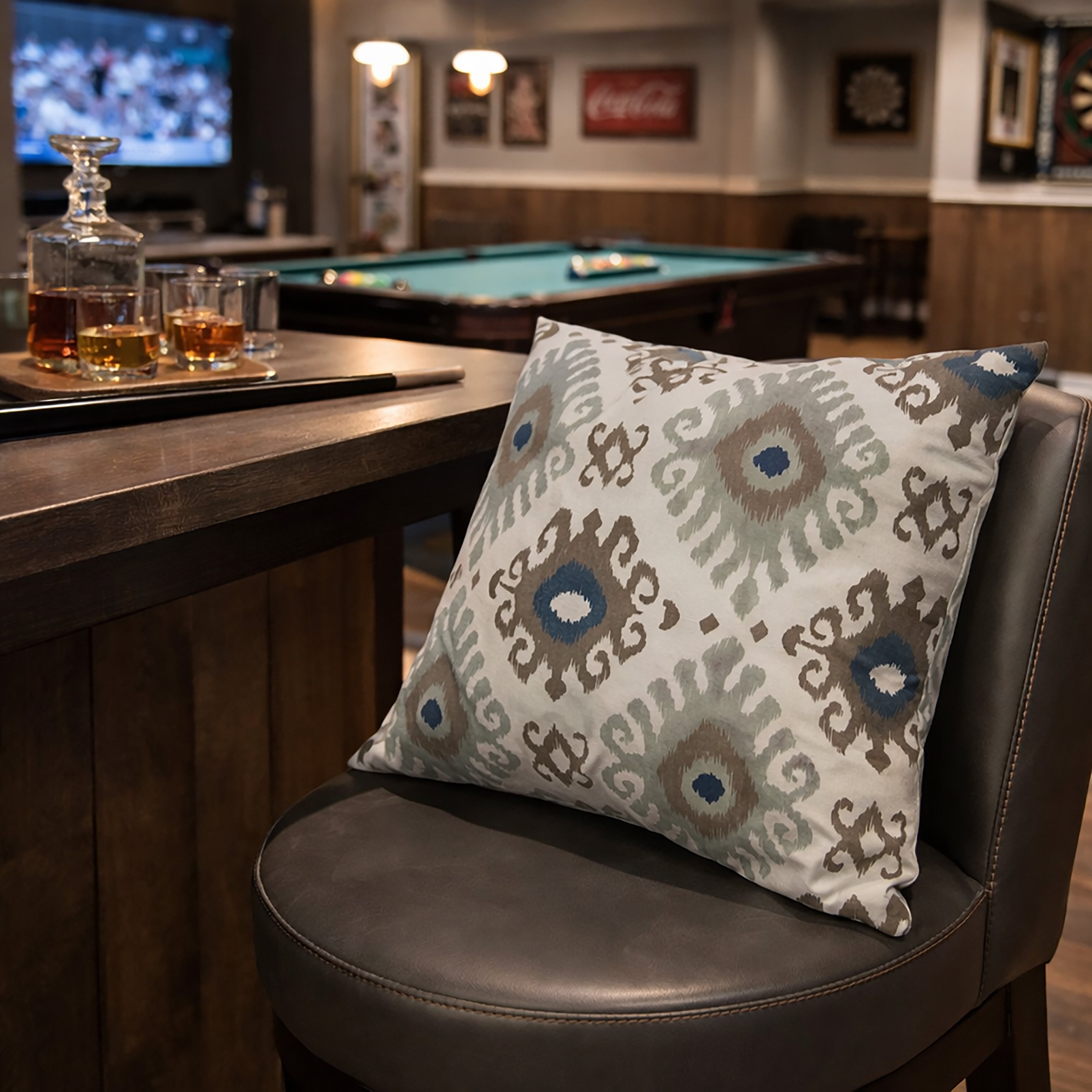 Urban Style Aztec Pattern Cushion – Beige & Blue, 45x45cm