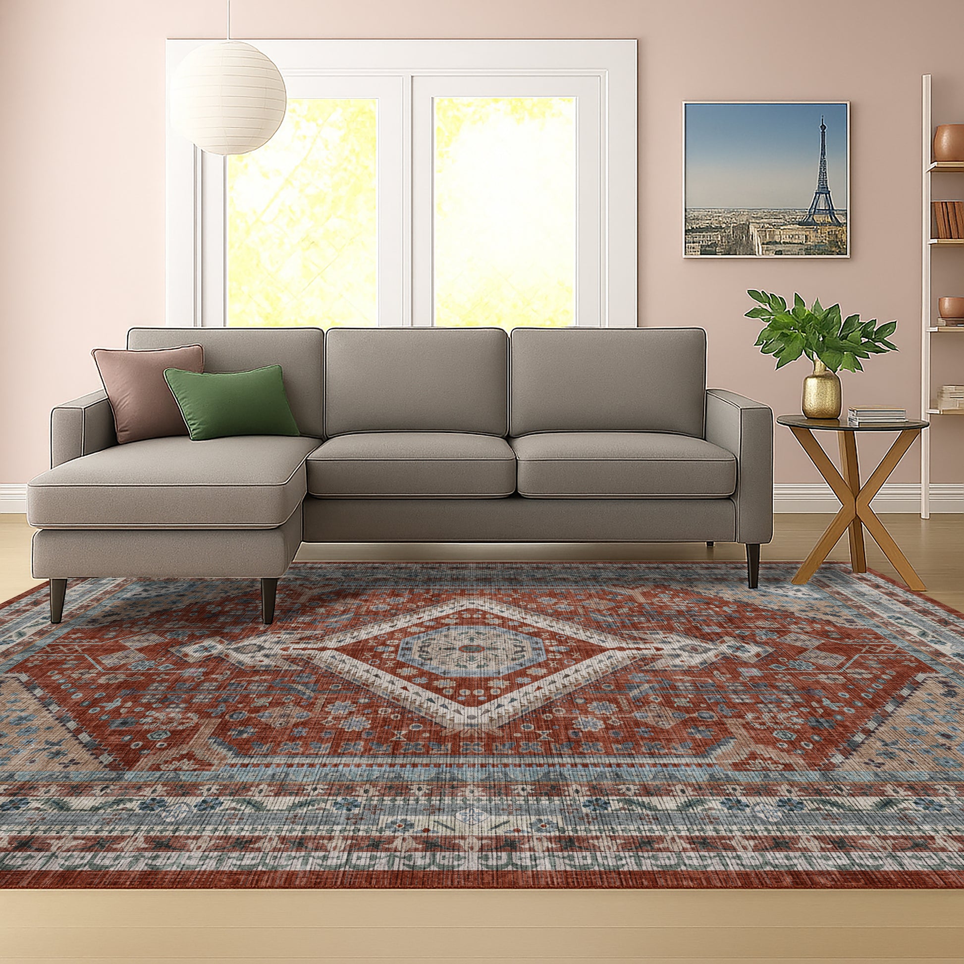 Bold, warm, and richly detailed – the Bazaar Rug in Rust by Urban Style is a statement piece for interiors inspired by heritage and tradition. With its intricately printed central medallion and Persian-style border, this microfibre rug delivers timeless sophistication with the ease of modern materials.
