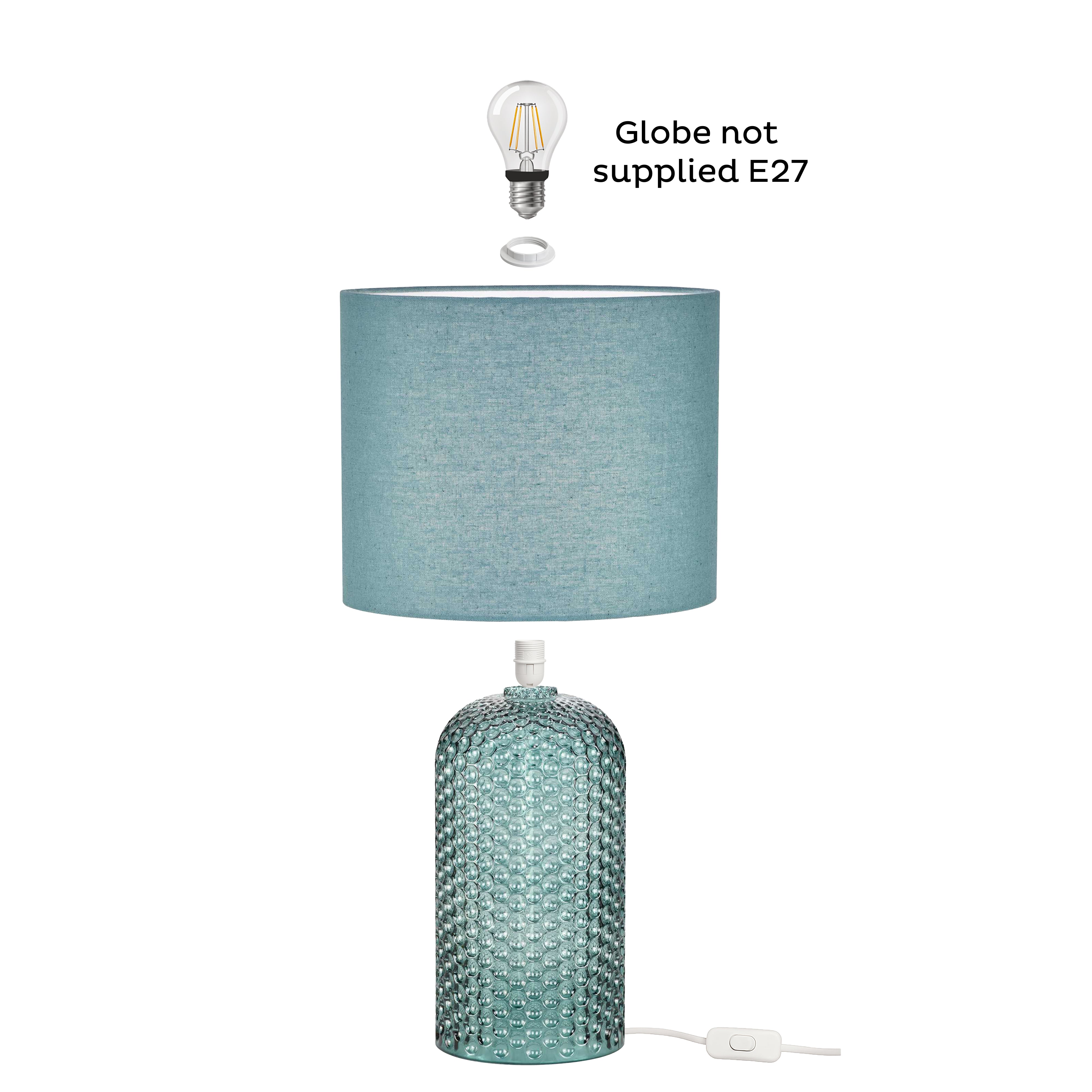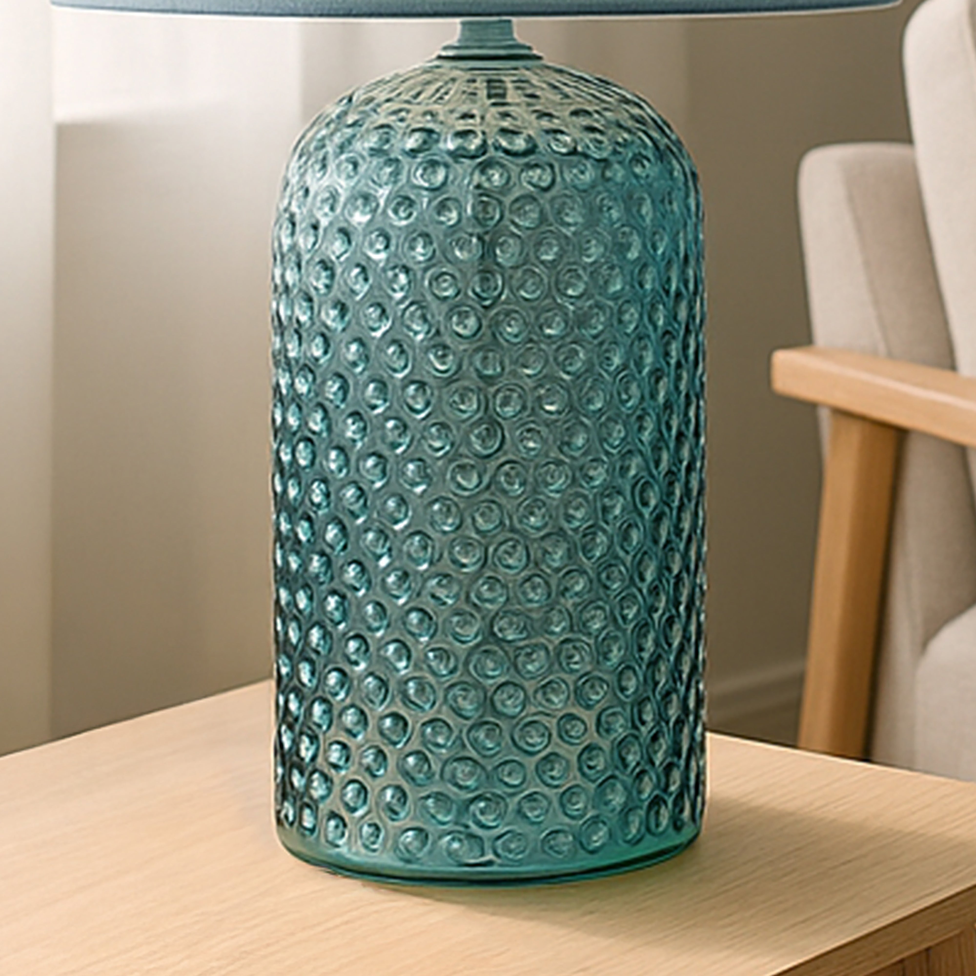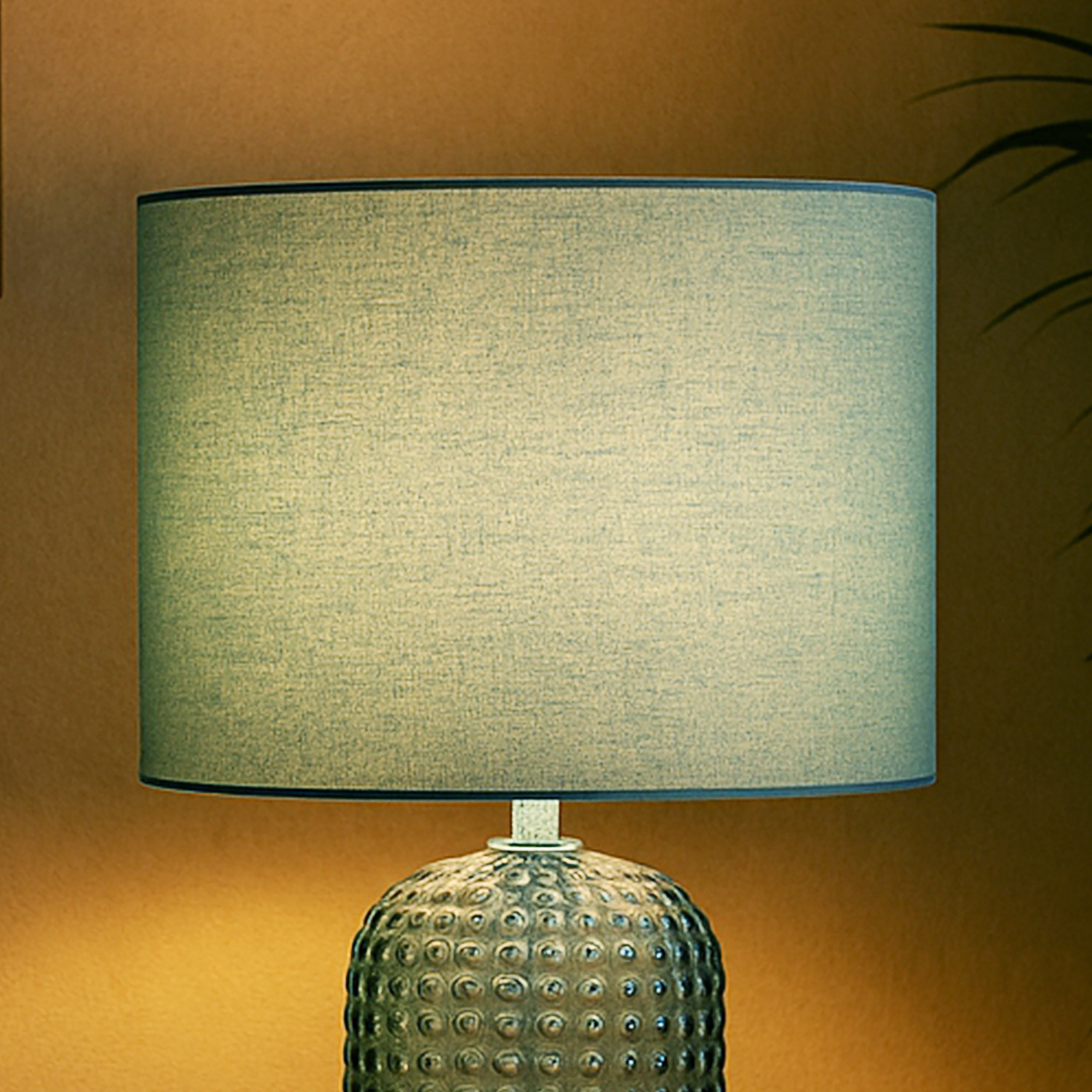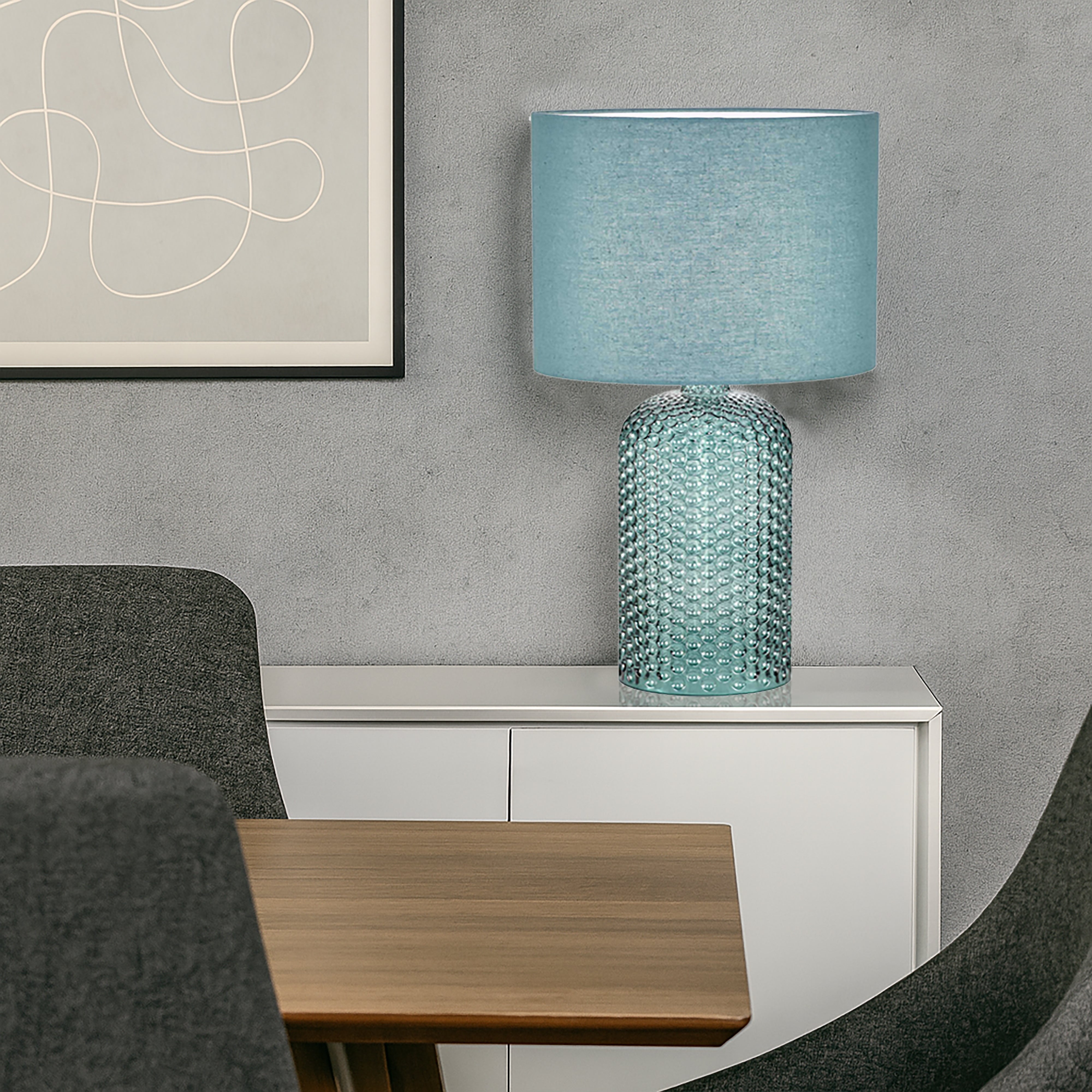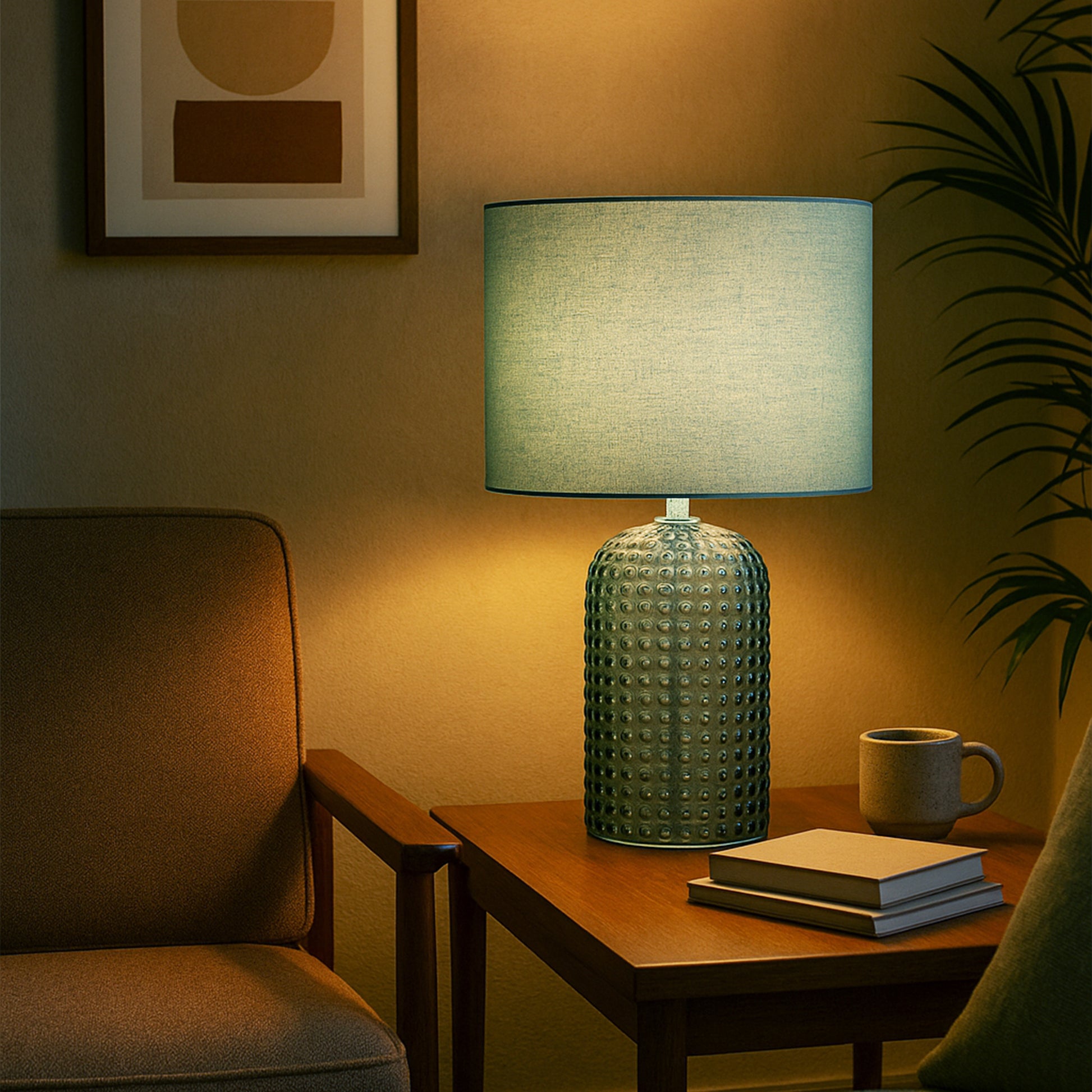 Add depth and softness to your space with the Billie Desktop Lamp by Urban Style. Its gently curved glass base features a unique dotted texture that plays with light even when the lamp is off, while the warm-toned fabric shade casts a calm, ambient glow — perfect for winding down or setting a cosy mood.