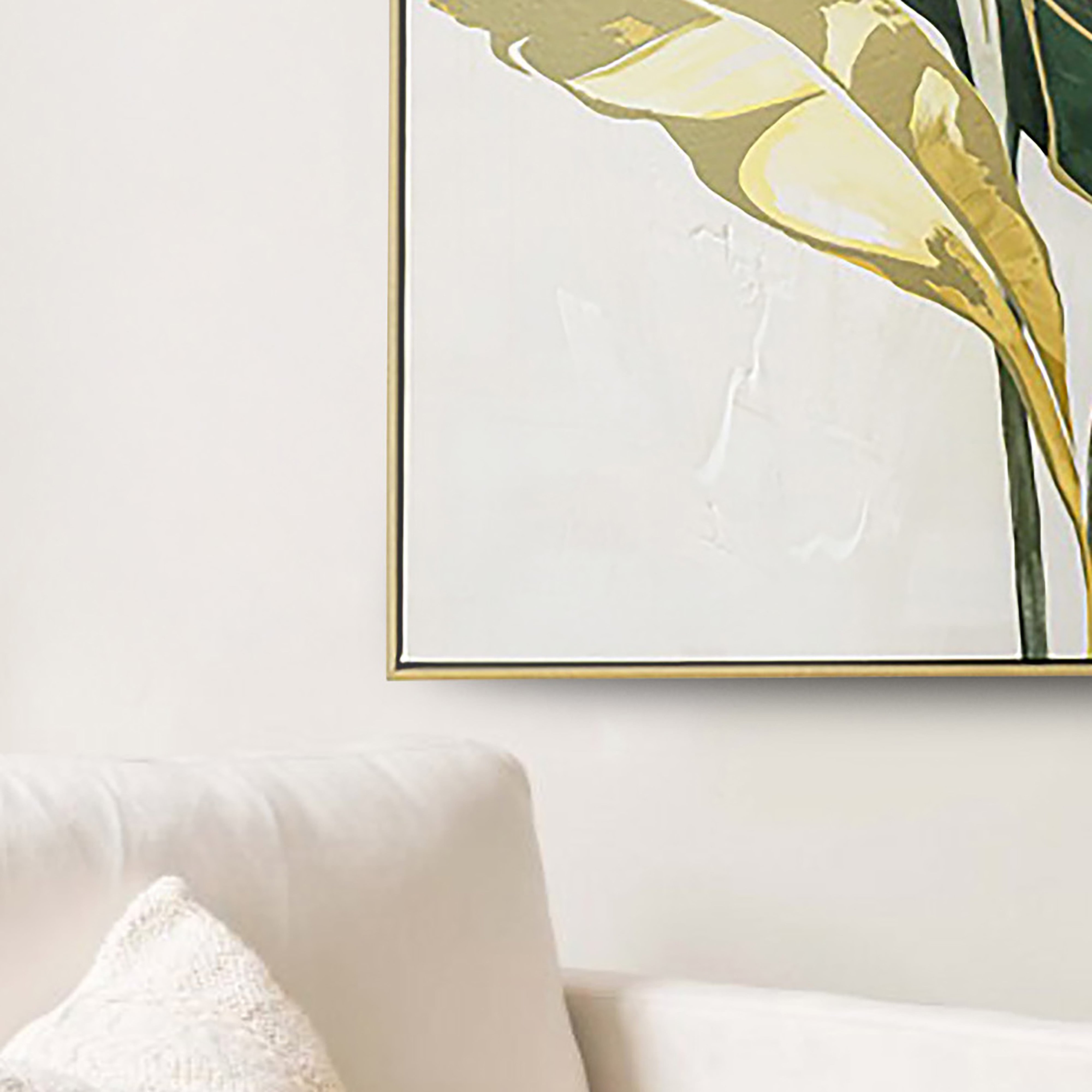 Introducing the Urban Style Brushmarks Gold Foiled Print, featuring a printed canvas on a sturdy timber support frame. The 3D gold foil embellishment adds depth and dimension to the palm print perfectly. The wood look plastic décor box frame is expertly fitted around the stretch canvas painting to further add a level of depth and complexity to your art piece. Elevate your space with this unique and expertly crafted piece.