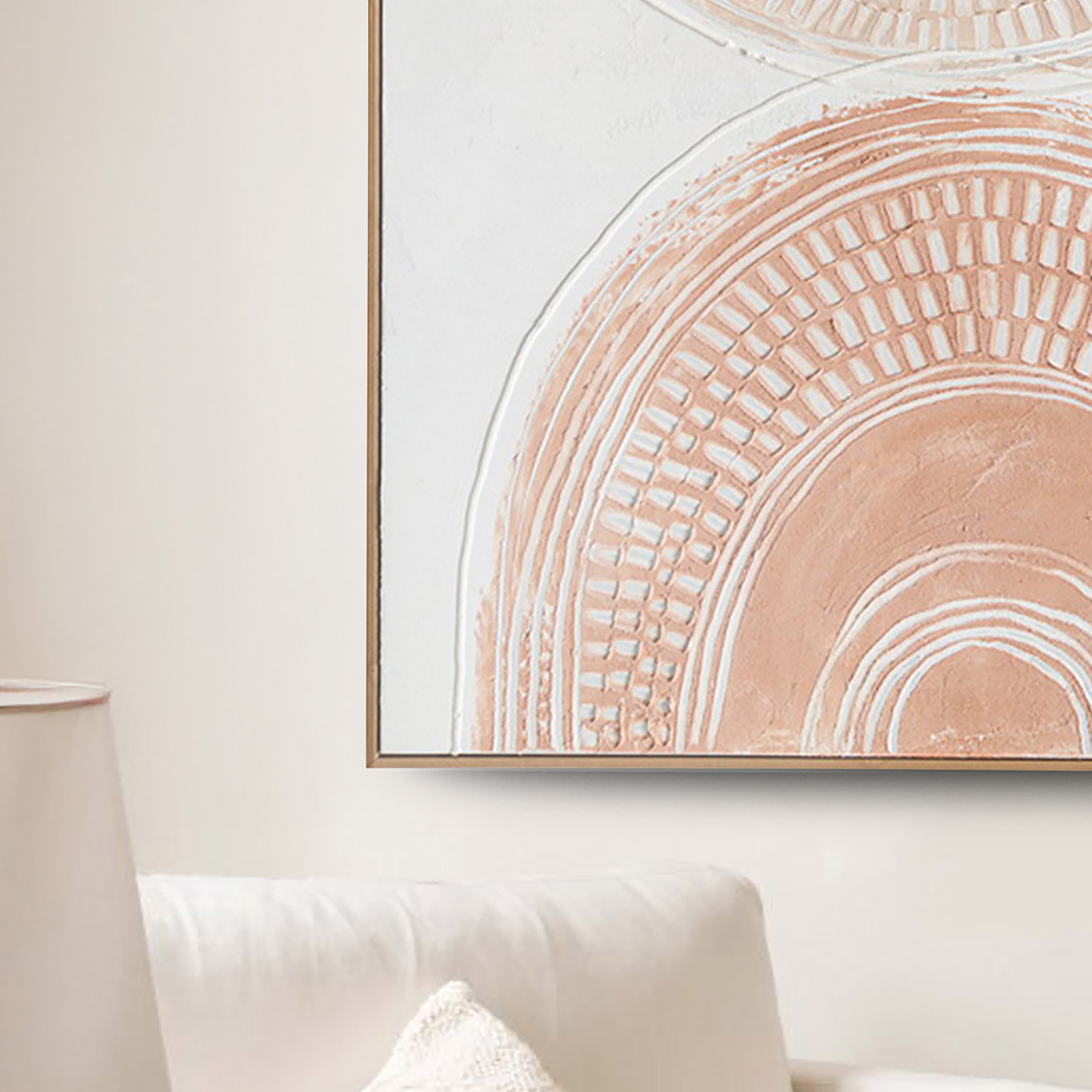 Introducing the Urban Style Brushmarks Oil Painting, featuring a hand painted canvas on a sturdy timber support frame. The 3D textured oil painting adds depth and dimension to the apricot arches perfectly. The wood look plastic décor box frame is expertly fitted around the stretch canvas painting to further add a level of depth and complexity to your art piece. Elevate your space with this unique and expertly crafted piece.