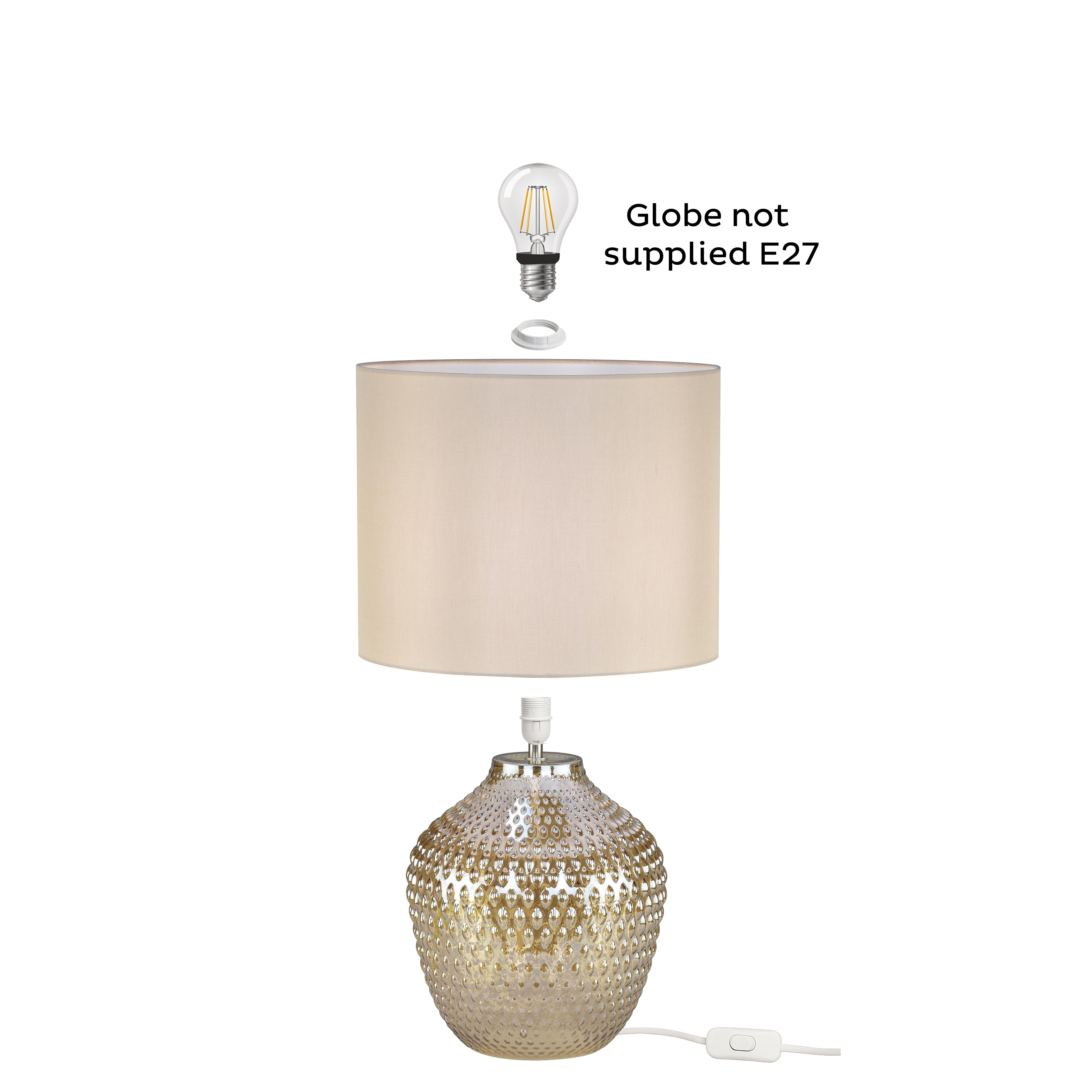 Elevate your bedroom or study with the understated elegance of the Cassie Desktop Lamp from Urban Style. Designed to blend soft lighting with contemporary character, the Cassie features a unique, textured glass base in a cool cream tone, topped with a neutral fabric shade for a calming glow.