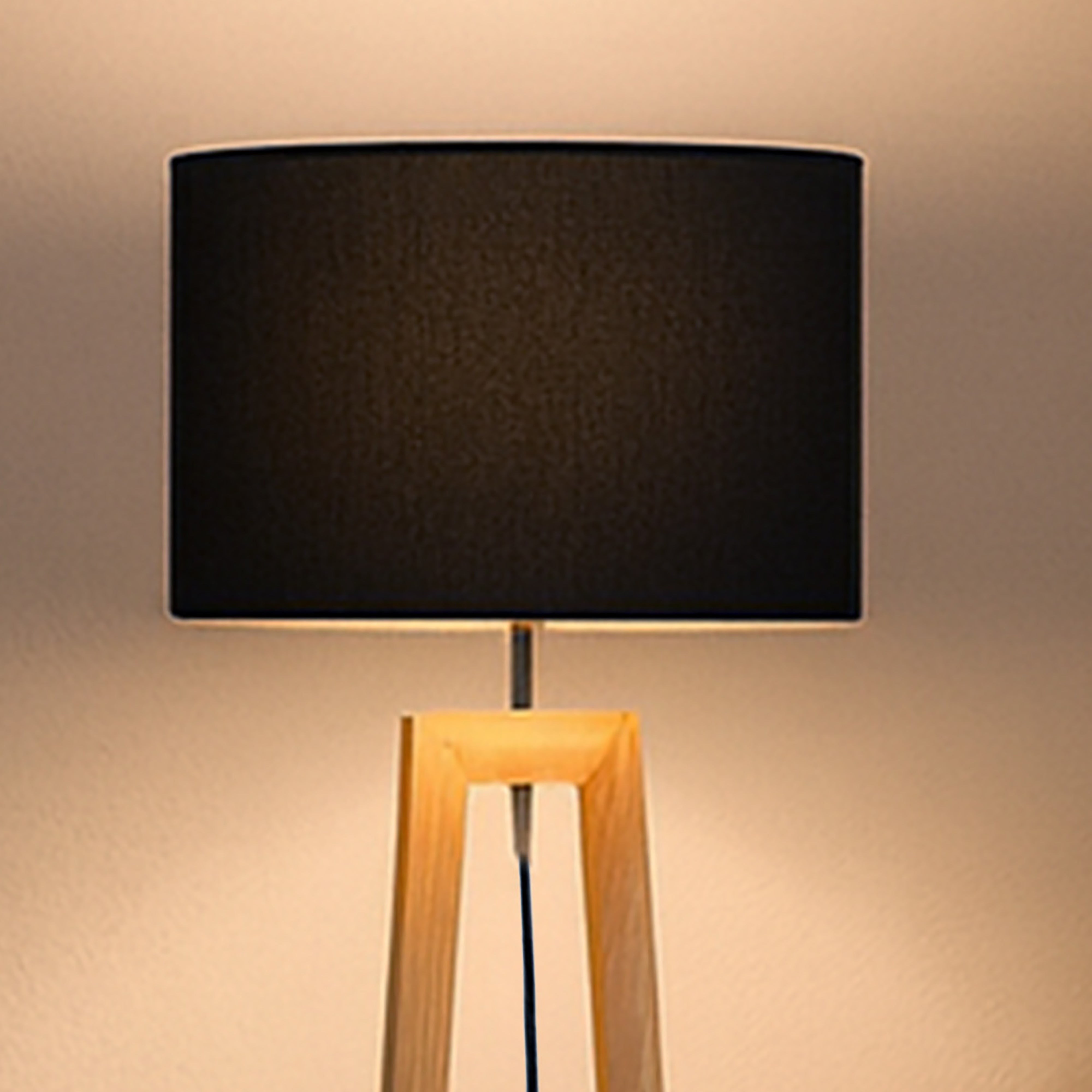 Black fabric drum shade for ambient lighting