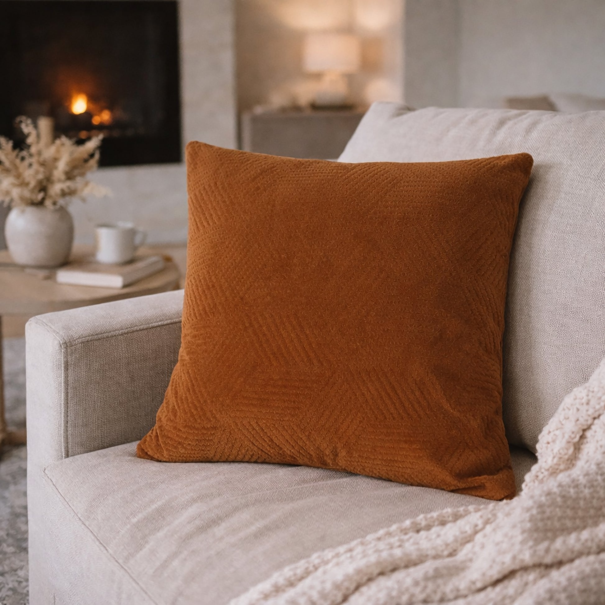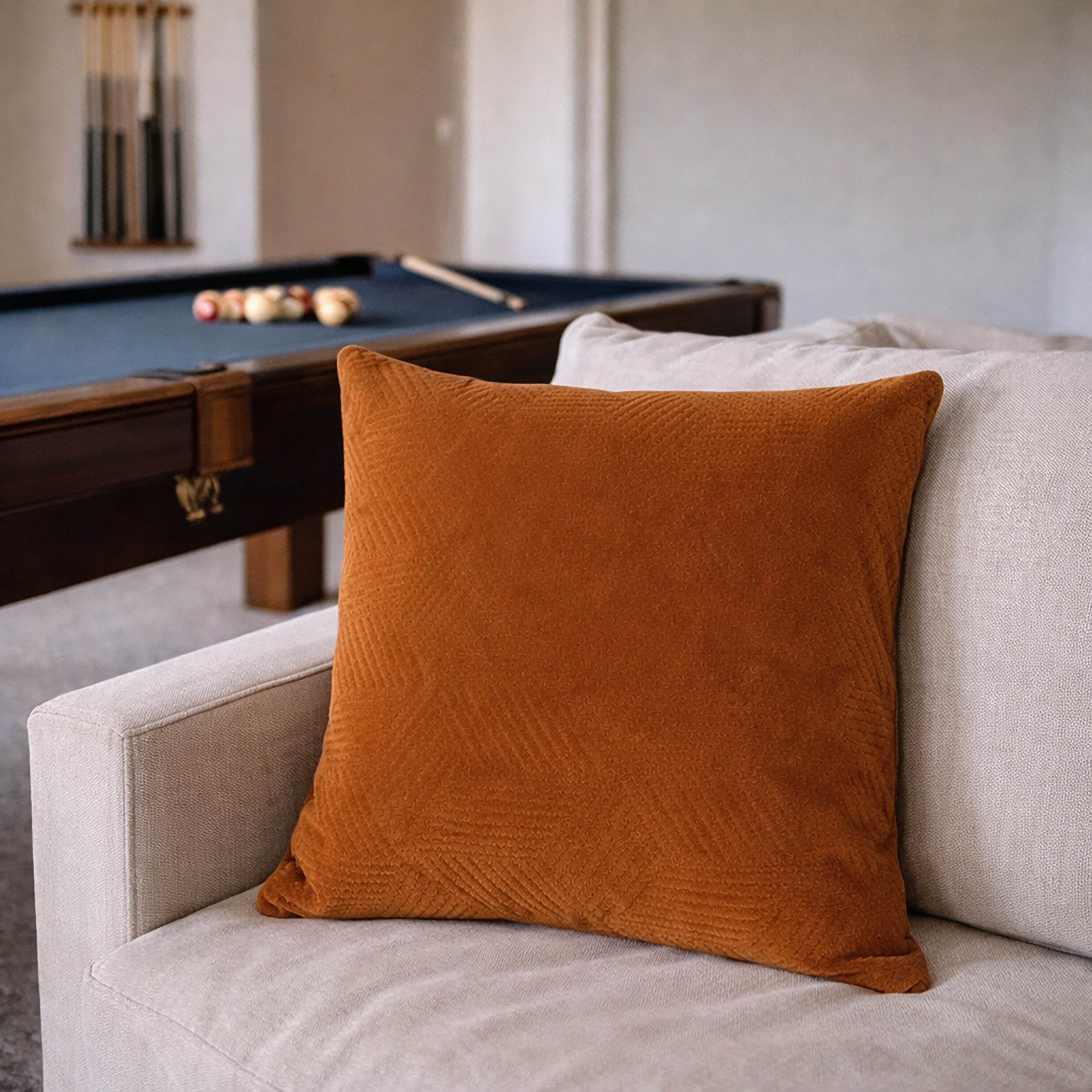 The rich rust tone and stitched line texture bring bold, earthy warmth to modern and classic interiors alike.