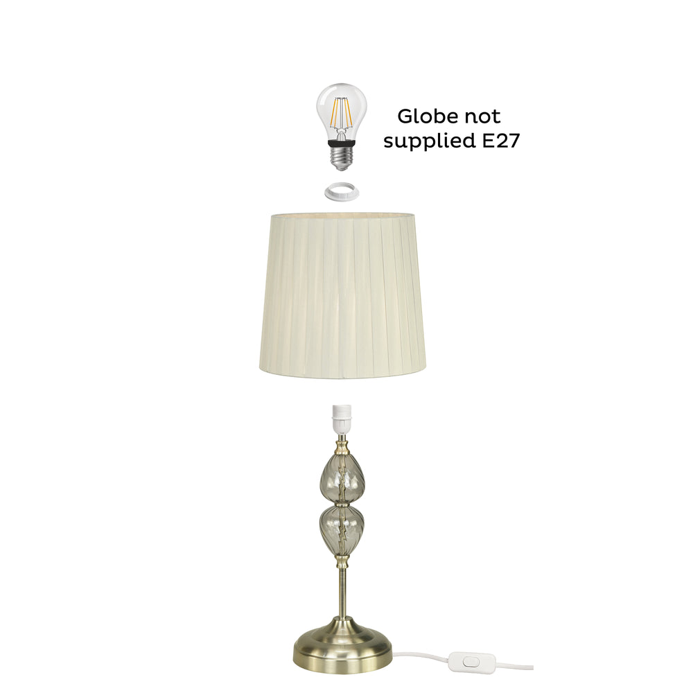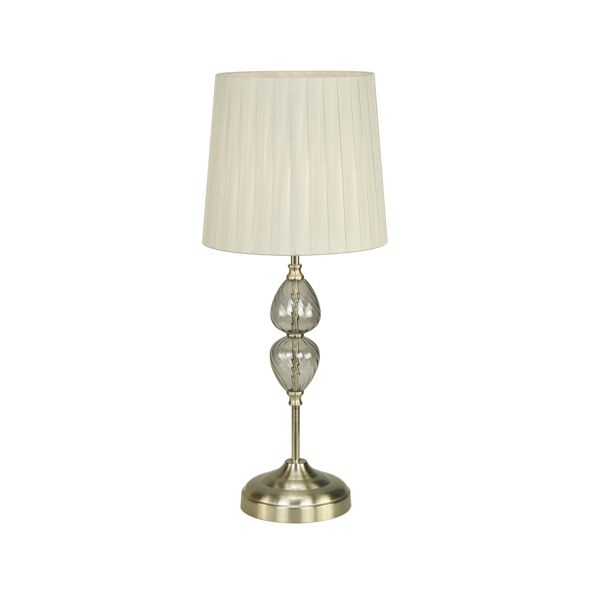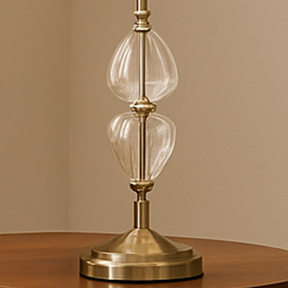 The Edith Bedside Lamp by Urban Style brings soft sophistication to your nightstand or reading corner. Crafted with a gleaming brushed metal base and detailed glass sphere accents, its timeless silhouette is beautifully complemented by a pleated fabric shade that diffuses a gentle, warm glow.