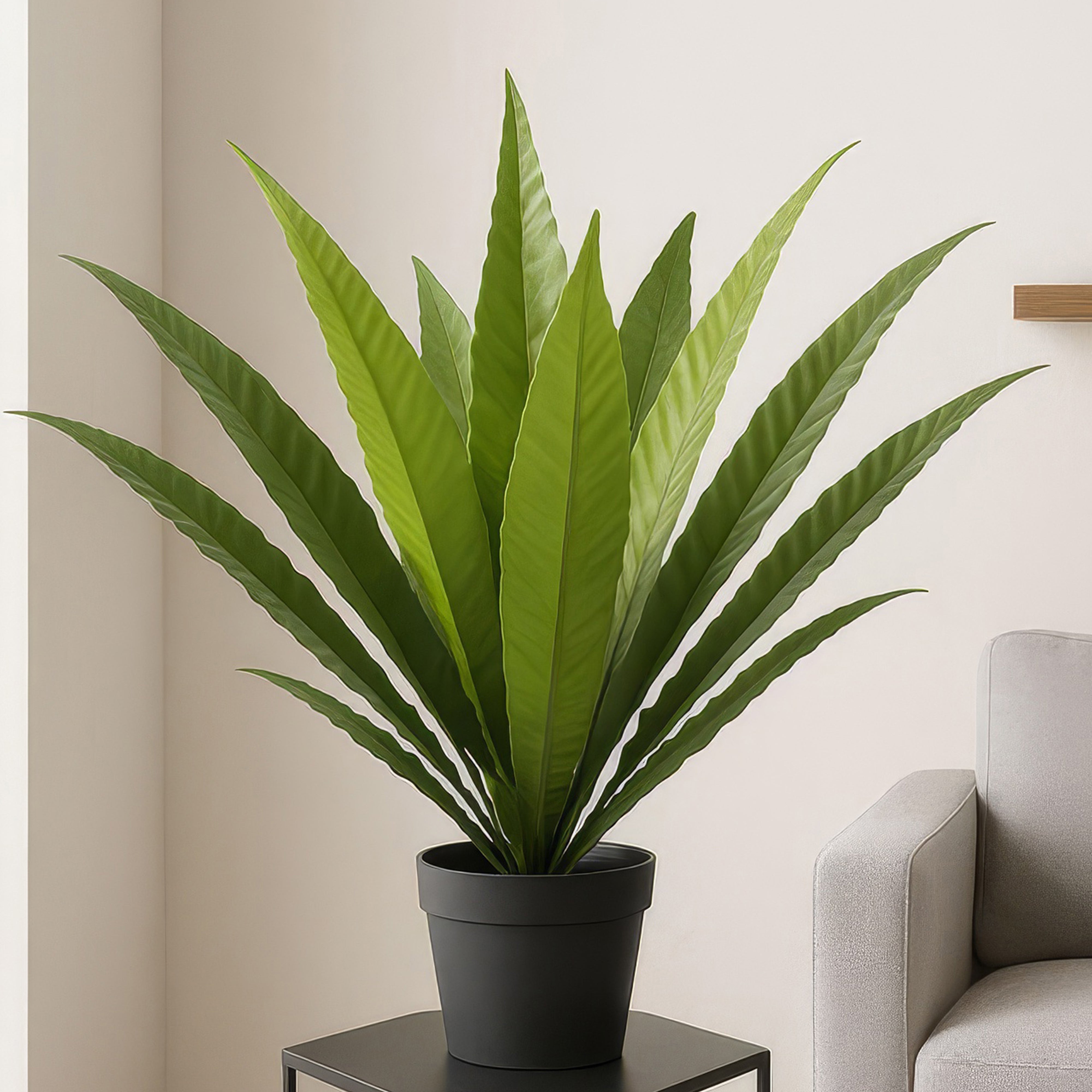 Crafted from durable materials, this versatile 70cm wide fern comes housed in a sleek black plastic pot, ready to add a refreshing green accent to bookshelves, countertops, or corner spaces. Whether you're styling a modern home office or softening a minimalist living room, it’s a timeless decorative companion. Designed for effortless beauty, this Birds Nest Fern requires only the occasional dusting—no watering, sunlight, or trimming. The rich leaf texture and organic shape make it nearly indistinguishable from the real thing.