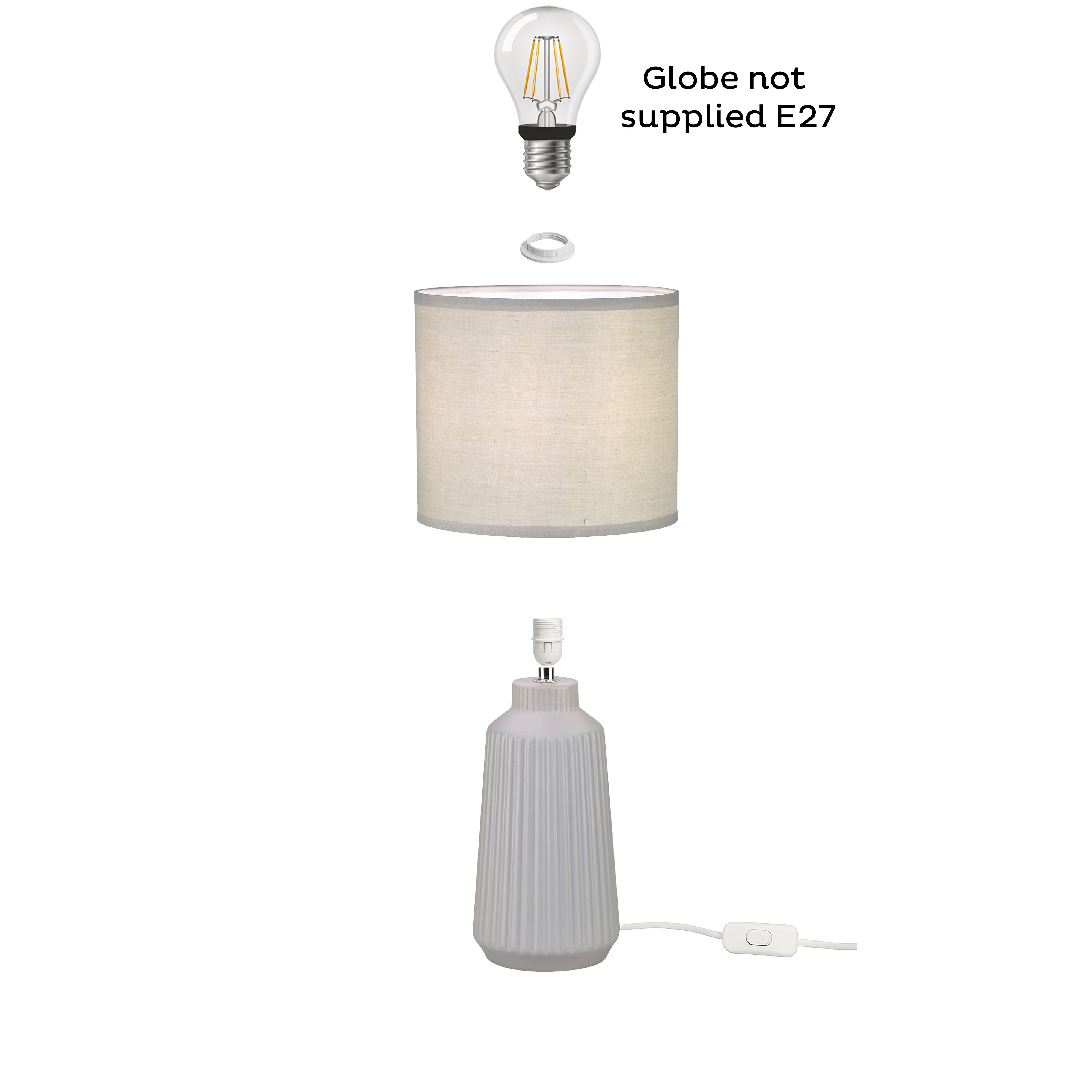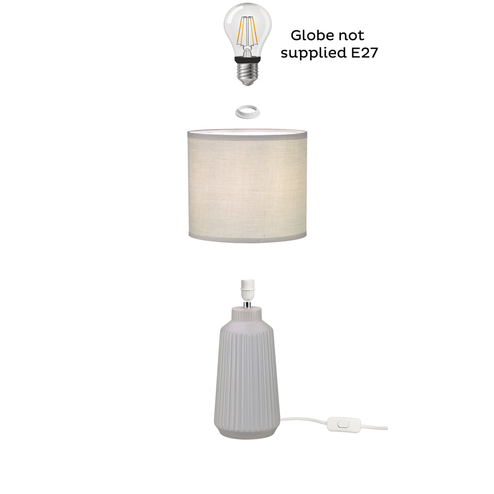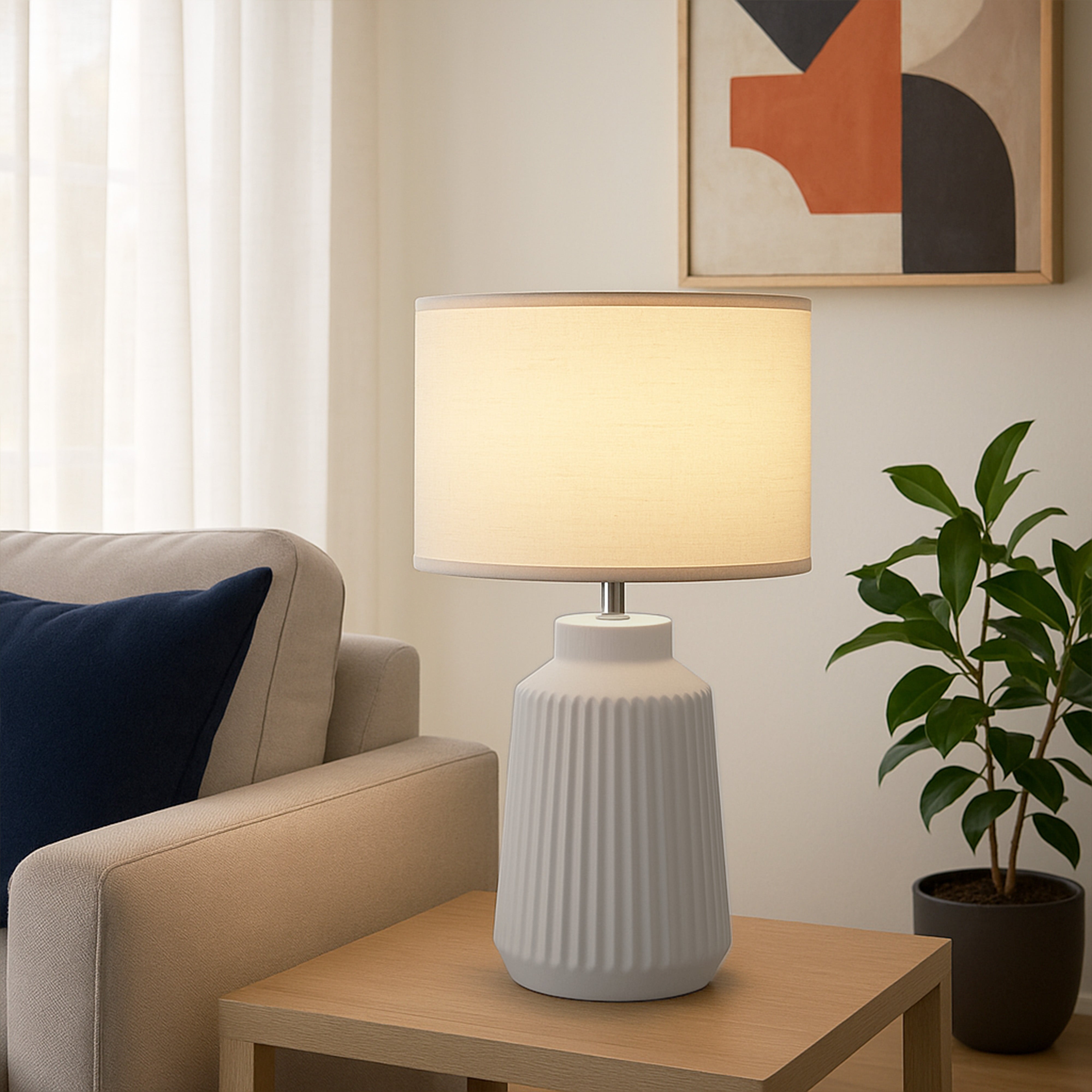 Sleek, stylish, and perfectly proportioned, the Fiona Table Lamp by Urban Style brings contemporary charm to any space. With a beautifully crafted ceramic base and a softly diffused fabric shade, Fiona delivers both form and function — ideal for side tables, nightstands, or home offices.