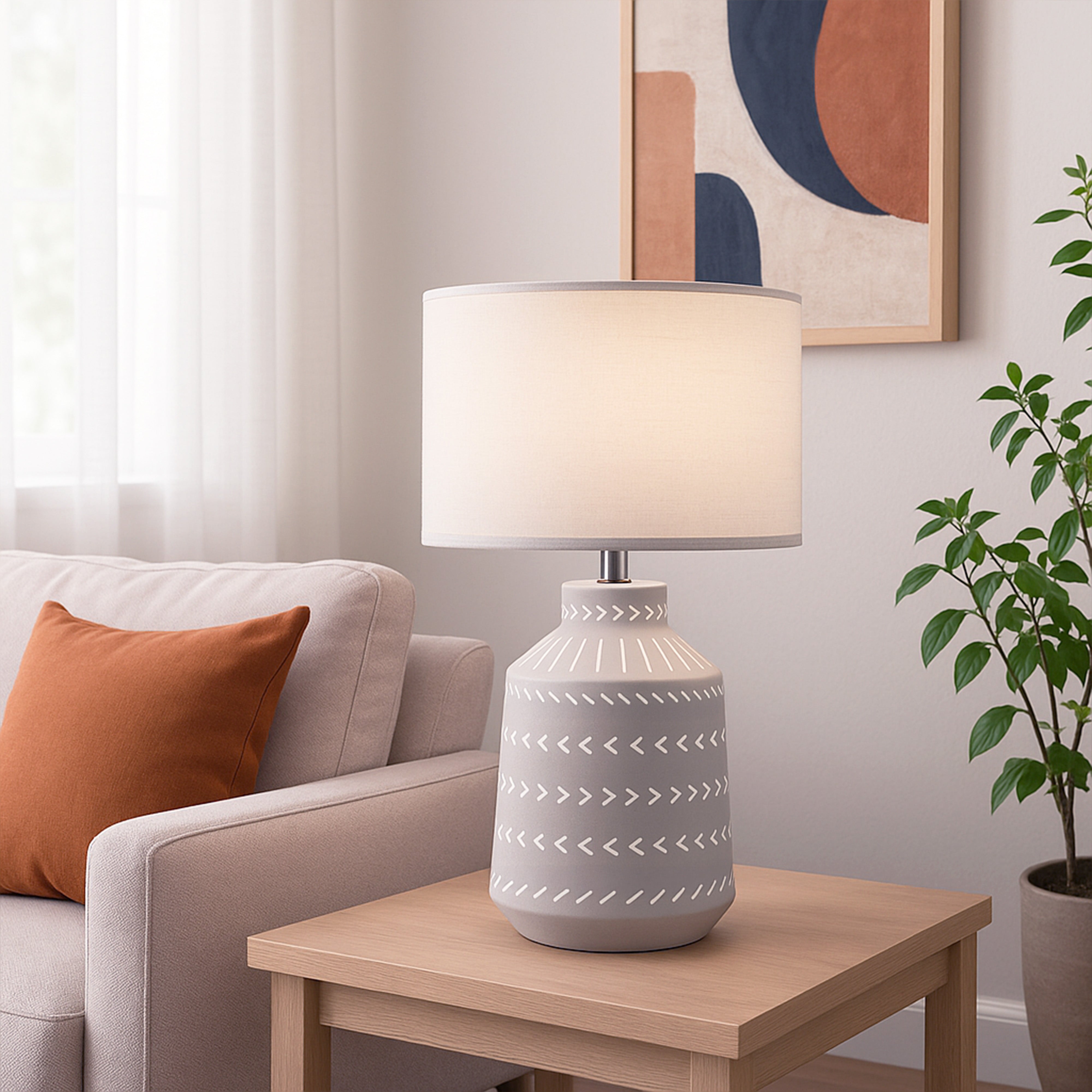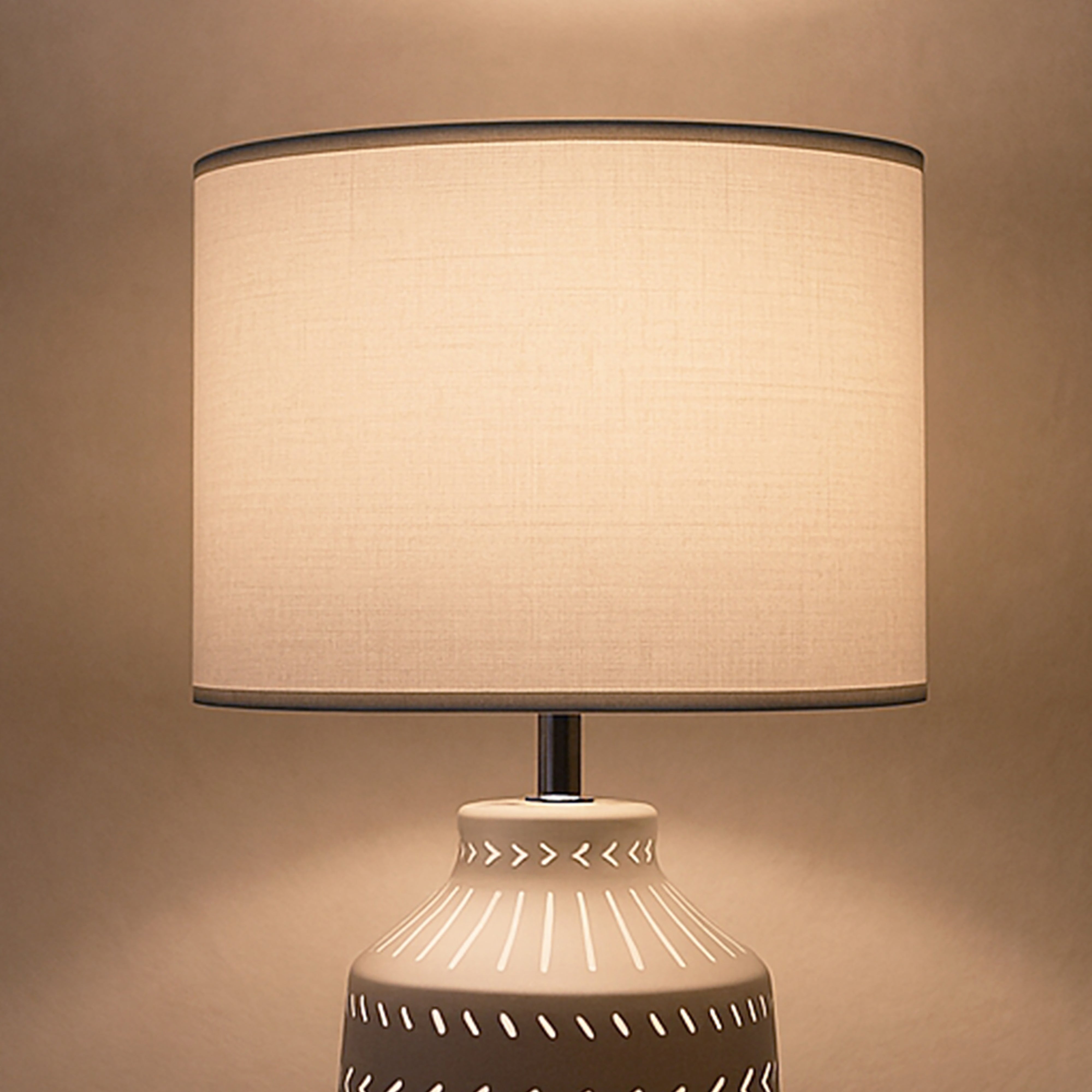 The Grace Table Lamp from Urban Style is where simplicity and sculptural design unite. Featuring a beautifully etched ceramic base with a fabric shade that diffuses warm, gentle light, Grace adds character and calm to any setting — from bedside tables to living room corners.