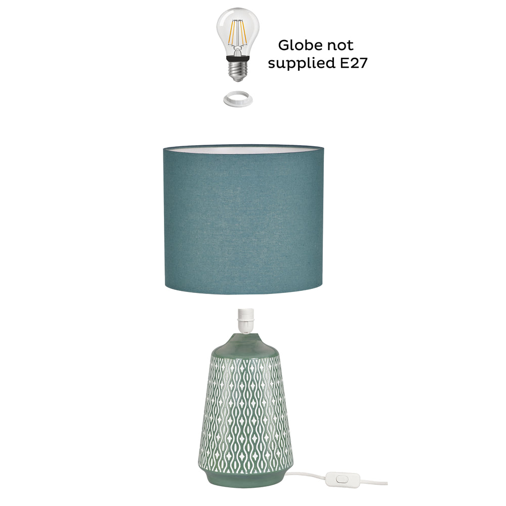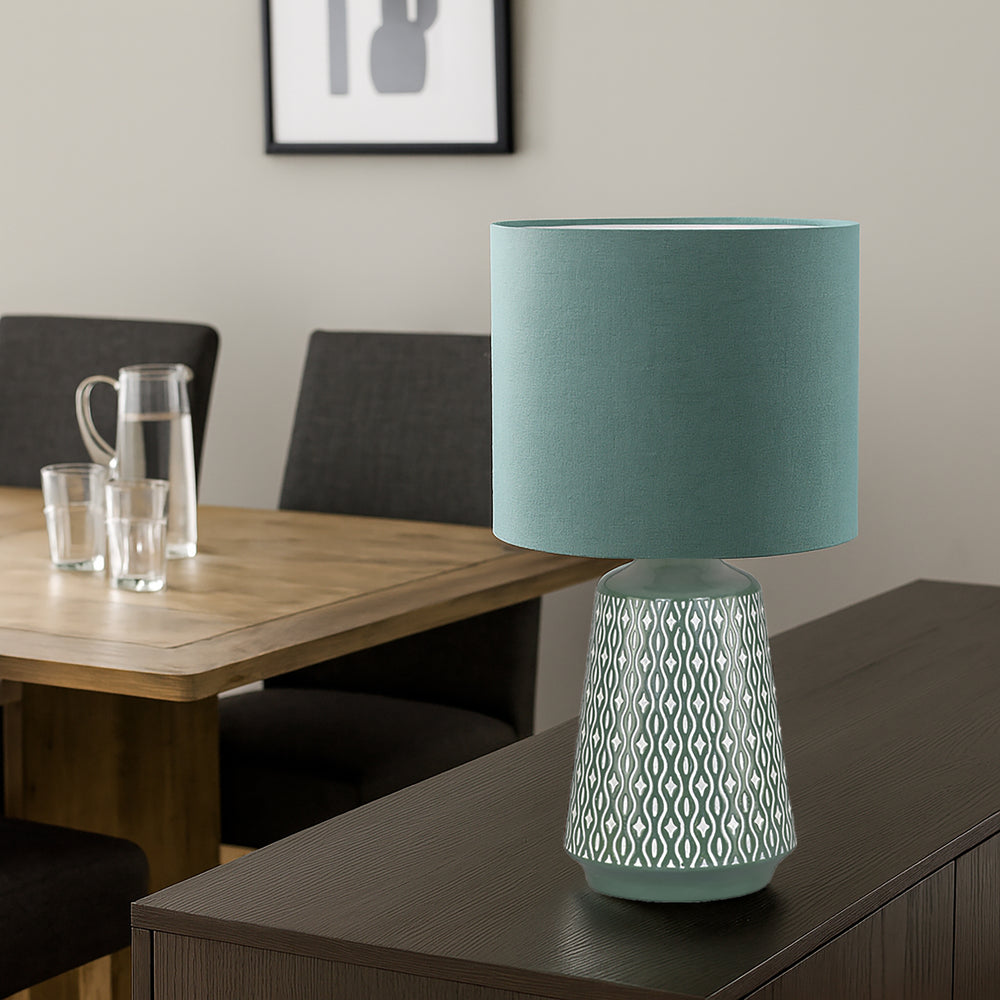 Style meets simplicity in the Inga Table Lamp from Urban Style. With its clean ceramic base adorned in a modern repeating pattern and a natural green palette, Inga creates a sense of calm in any space. Ideal for bedside tables, living room accents, or home offices, this lamp complements neutral interiors and Scandinavian-inspired décor.