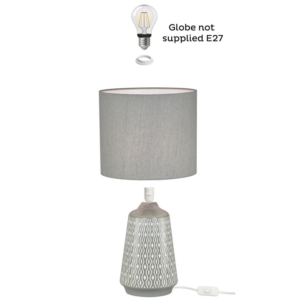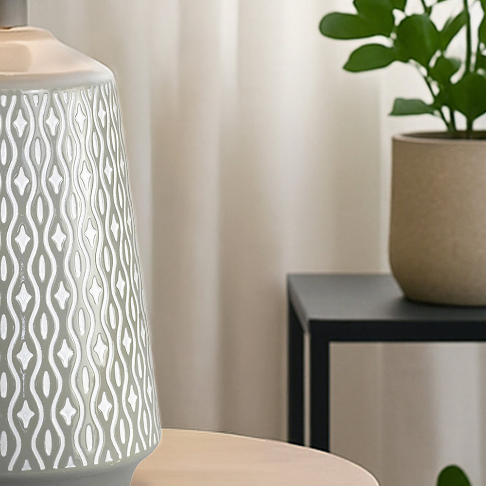 Style meets simplicity in the Inga Table Lamp from Urban Style. With its clean ceramic base adorned in a modern repeating pattern and a soft grey palette, Inga creates a sense of calm in any space. Ideal for bedside tables, living room accents, or home offices, this lamp complements neutral interiors and Scandinavian-inspired décor.