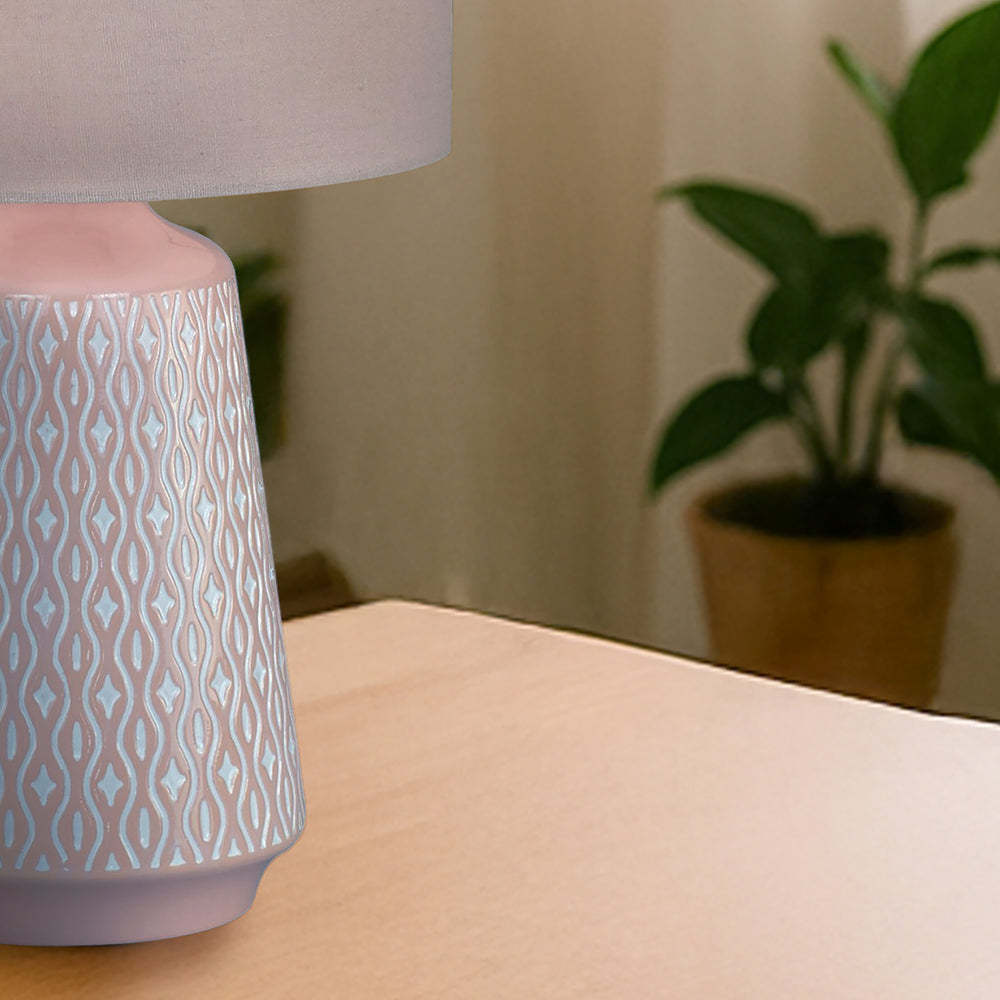 Style meets simplicity in the Inga Table Lamp from Urban Style. With its clean ceramic base adorned in a modern repeating pattern and a natural earth terracotta palette, Inga creates a sense of calm in any space. Ideal for bedside tables, living room accents, or home offices, this lamp complements neutral interiors and Scandinavian-inspired décor.