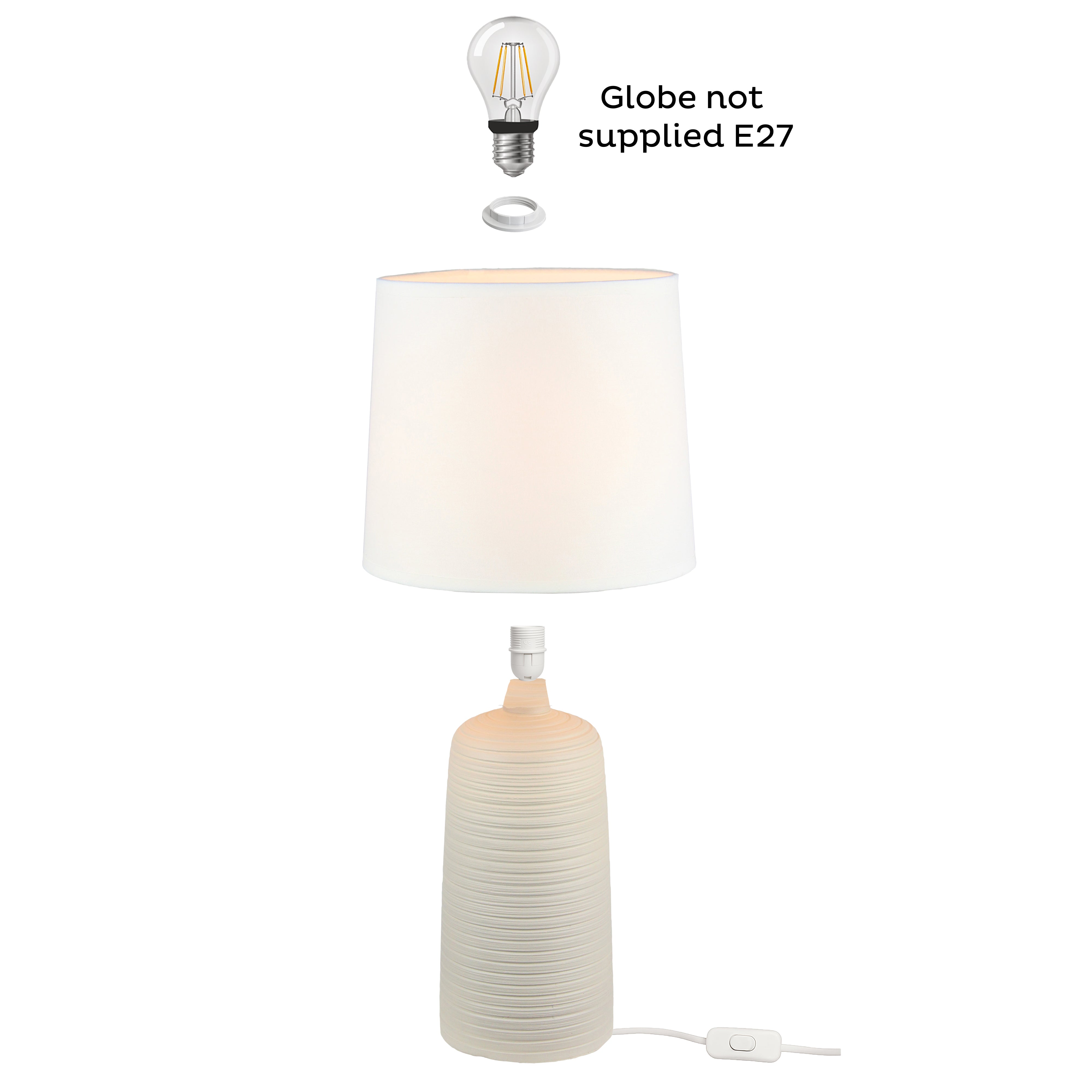 Bring warmth and subtle sophistication into your home with the Keira Table Lamp from Urban Style. With its gently textured ceramic base in a creamy neutral tone and paired with a matching fabric shade, Keira adds a serene glow to bedrooms, lounges, and reading corners.